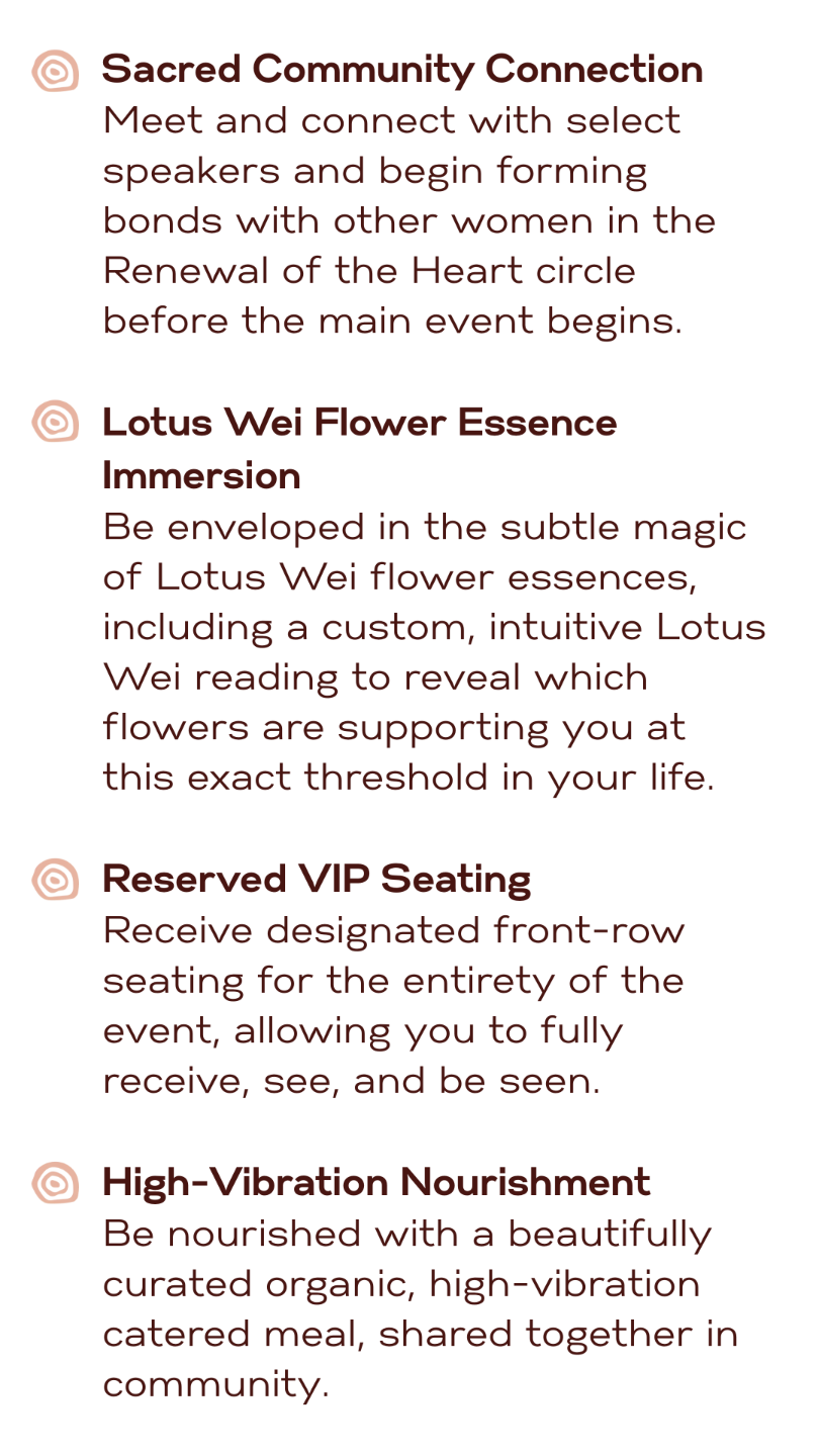 Only 60 tickets are available to preserve the depth, connection, and care this experience is designed to offer. Choose the path that feels most aligned for this season of your life.